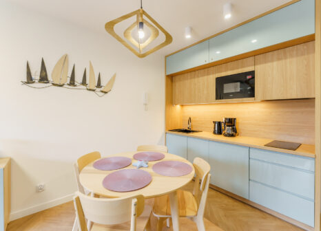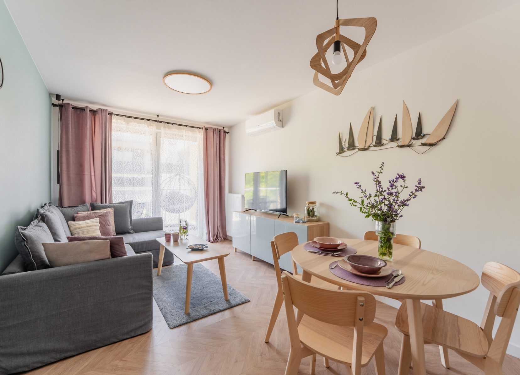 Apartament jest ofertą skierowaną szczególnie do gości, którzy w przytulnym wnętrzu chcą spędzić błogo swój urlop. Na powierzchni 35 m 2 urządzono 2 osobne pokoje, które zapewnią komfortowy, przyjemny pobyt. Kawa o poranku na przestronnym tarasie?