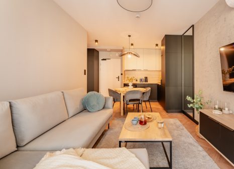 Każdy element apartamentu został zaprojektowany z myślą o wygodzie gości i intuicyjnym korzystaniu z przestrzeni: