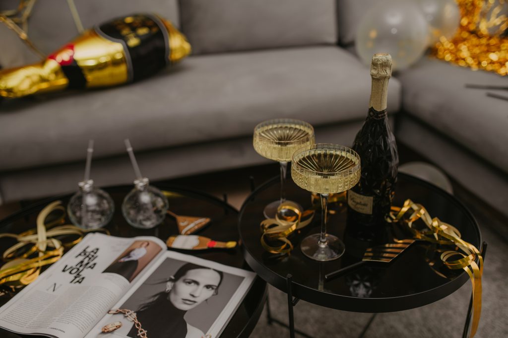 • butelkę musującego wina i kieliszki na przywitanie Nowego Roku